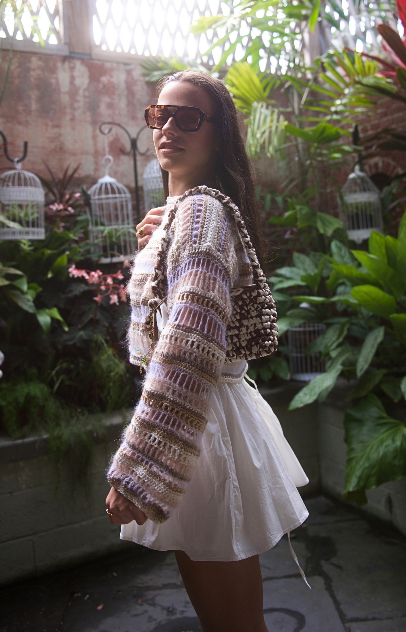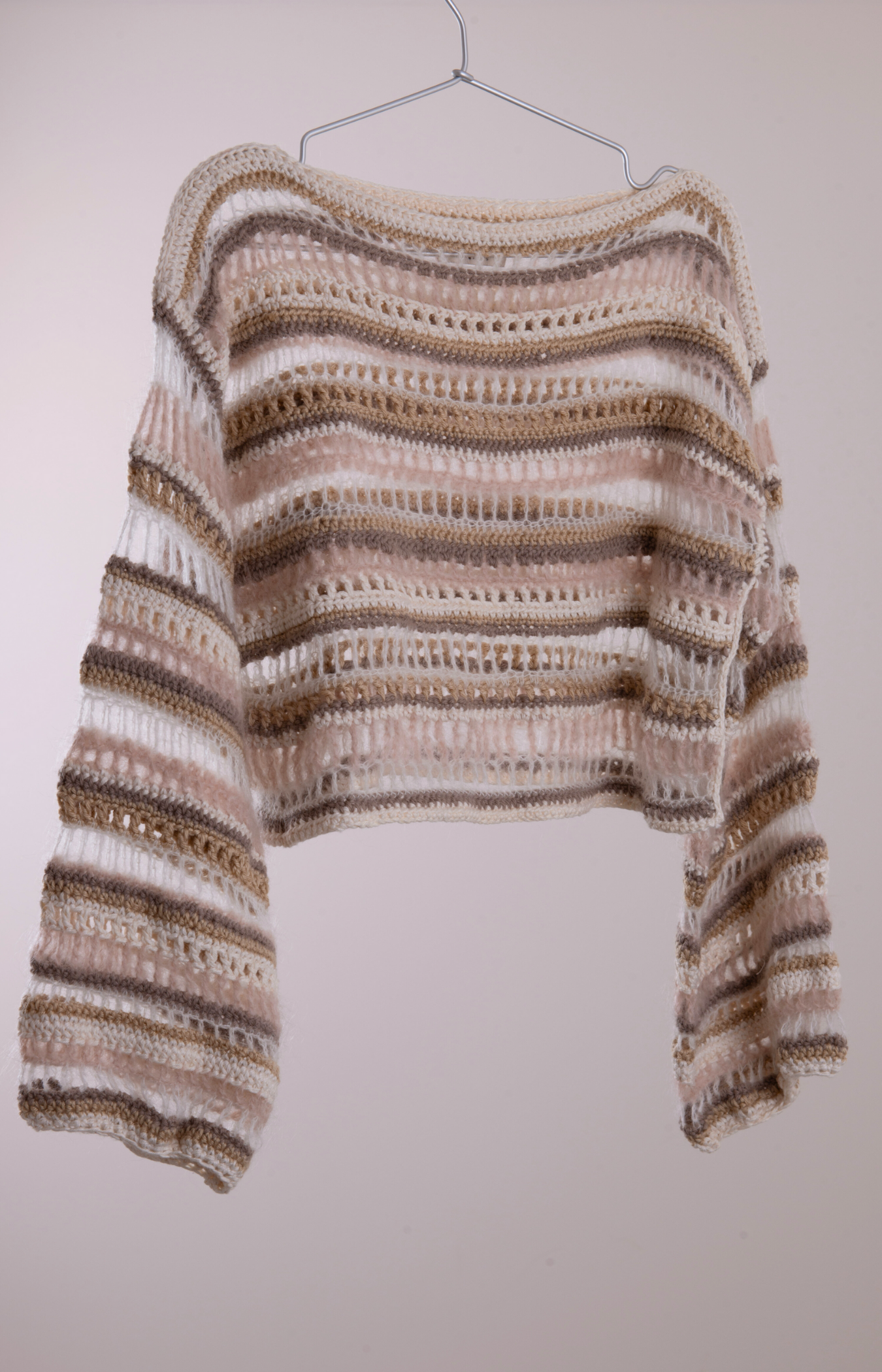 Handmade from a soft blend of mohair, bamboo cotton, and acrylic, the Breeze Sweater is perfect for warm days and easy layering. Lightweight and breathable, it adds a touch of texture and comfort to any summer look.