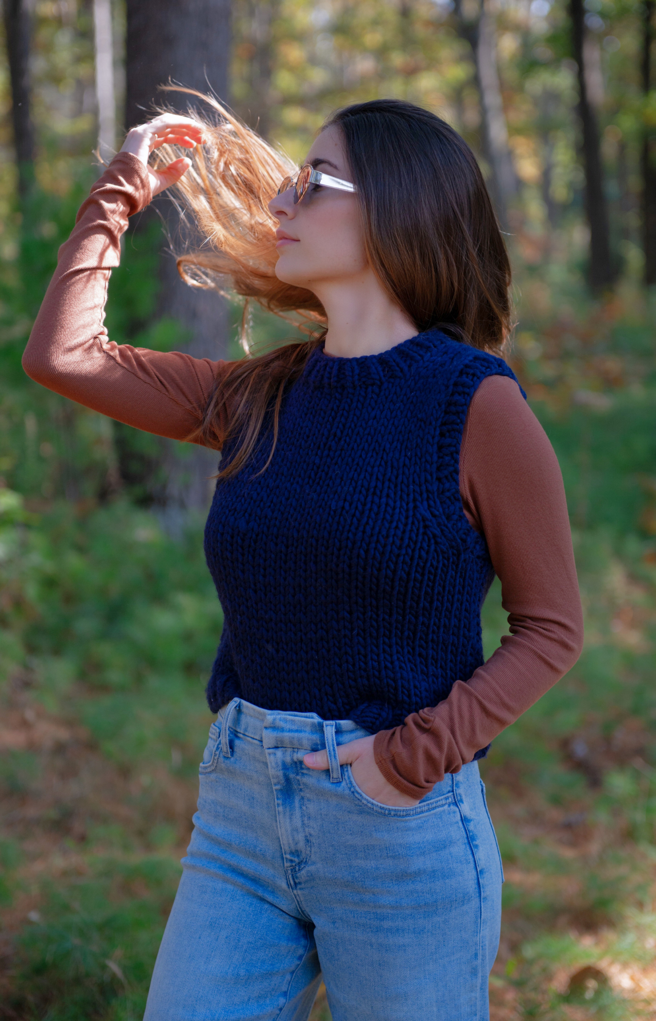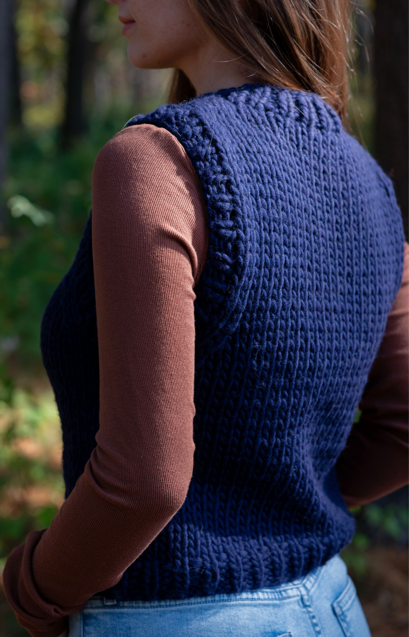 Handmade from 100% wool, this vest blends refined warmth with effortless style. Its clean, tailored design layers beautifully over shirts or sweaters, adding cozy sophistication to any look.