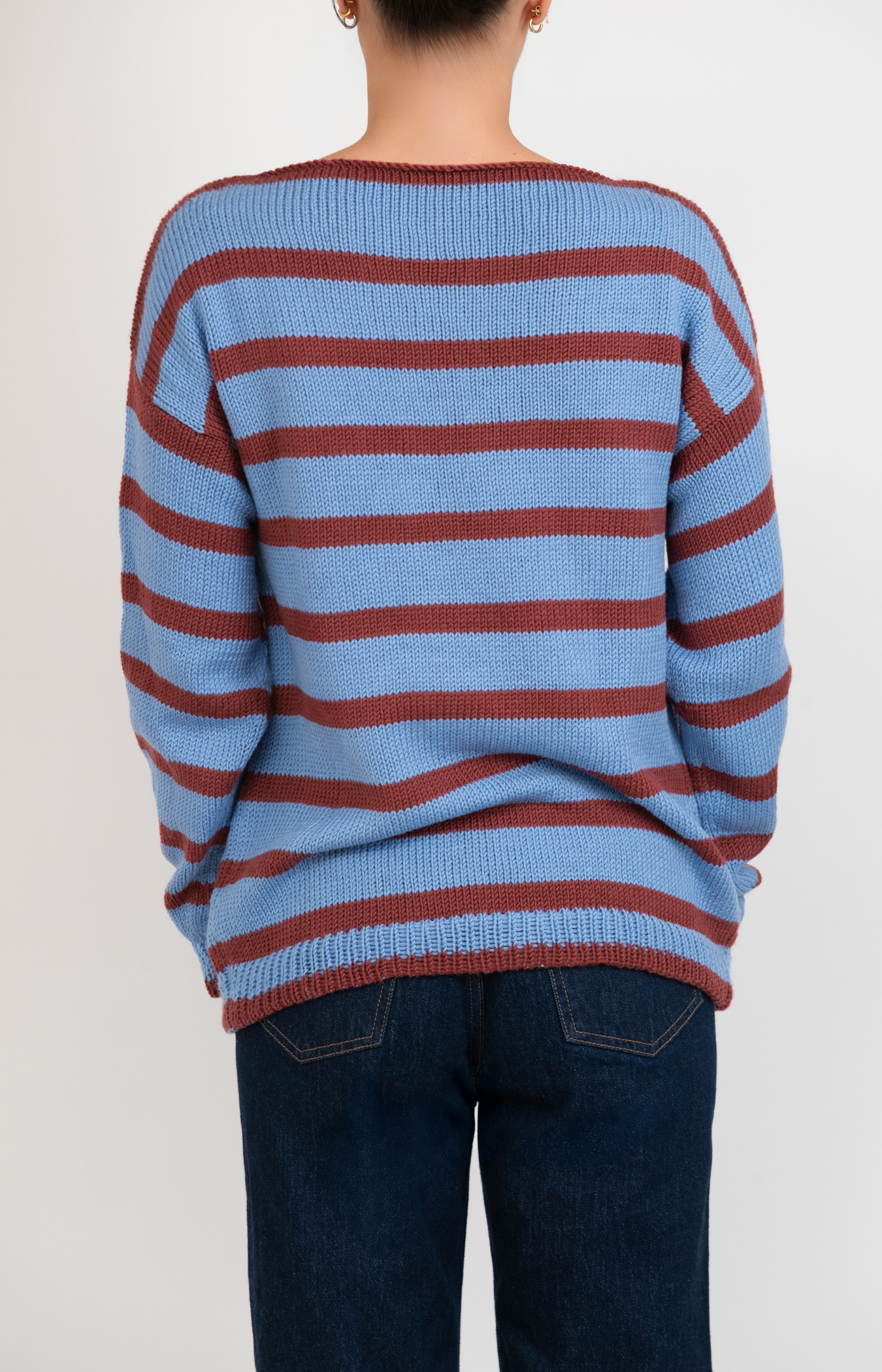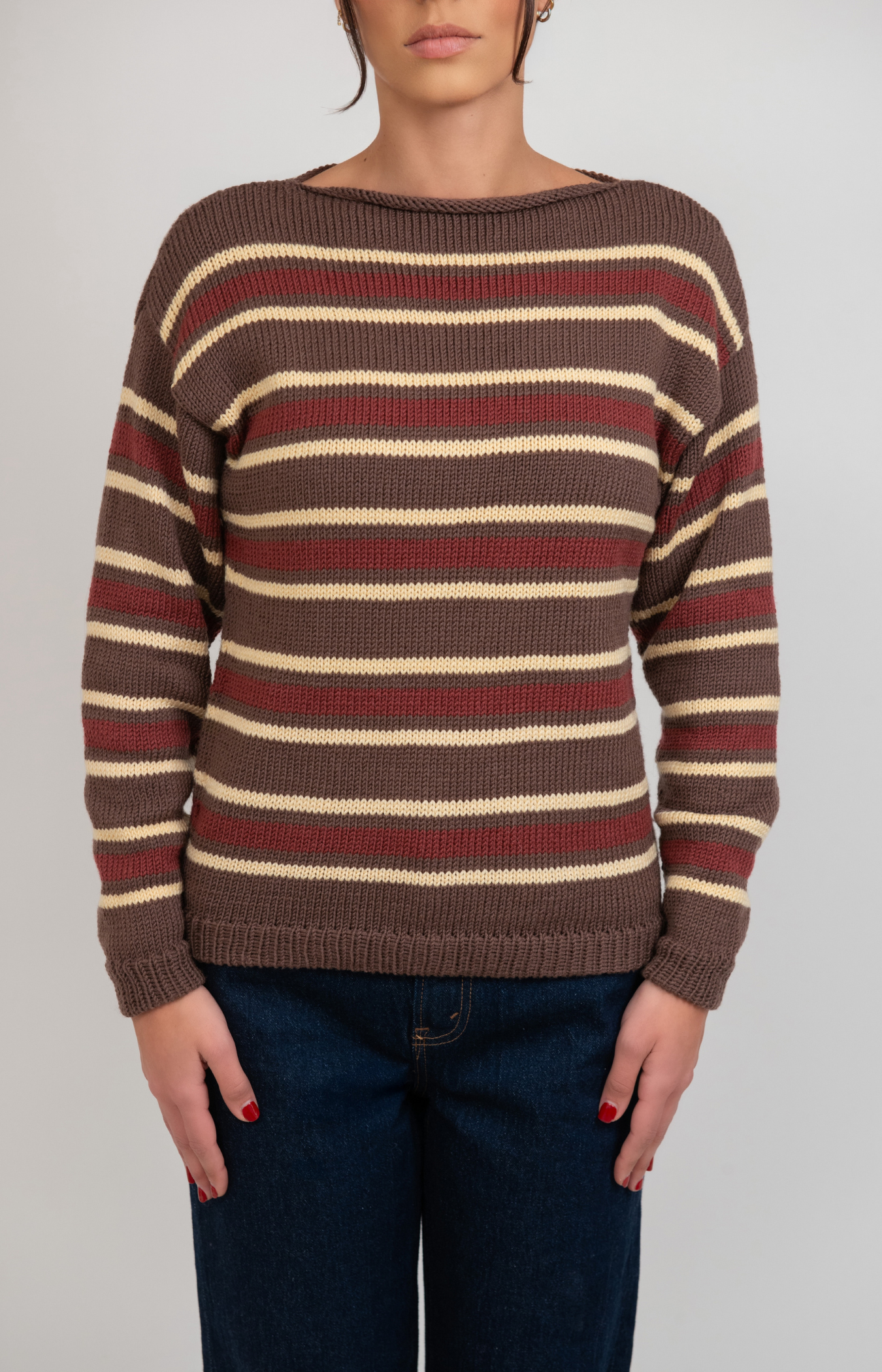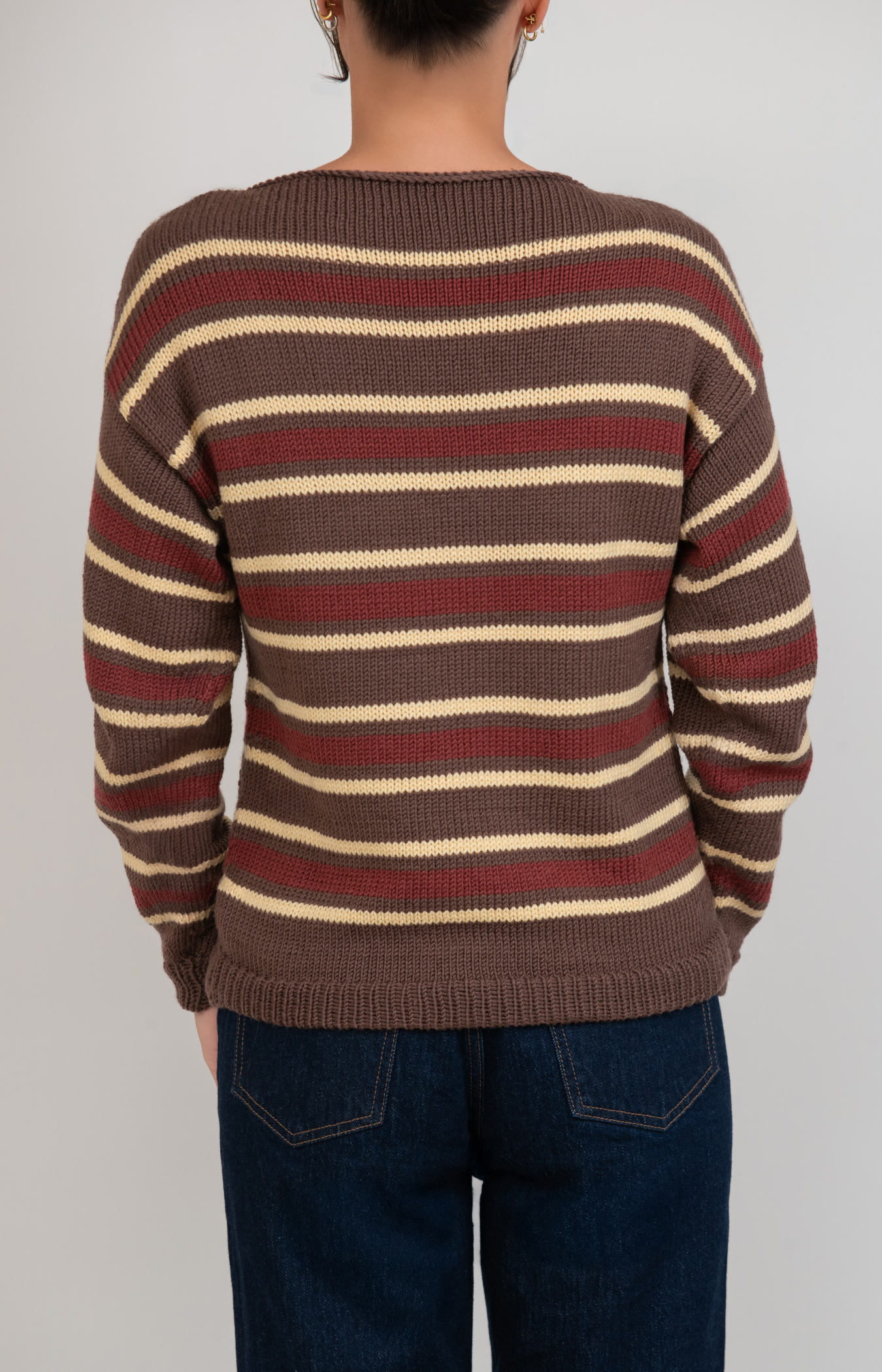 Hand-knit for everyday comfort, this striped pullover is soft, timeless, and cozy. Made from 100% premium merino wool, it provides natural warmth and breathable comfort through every season.