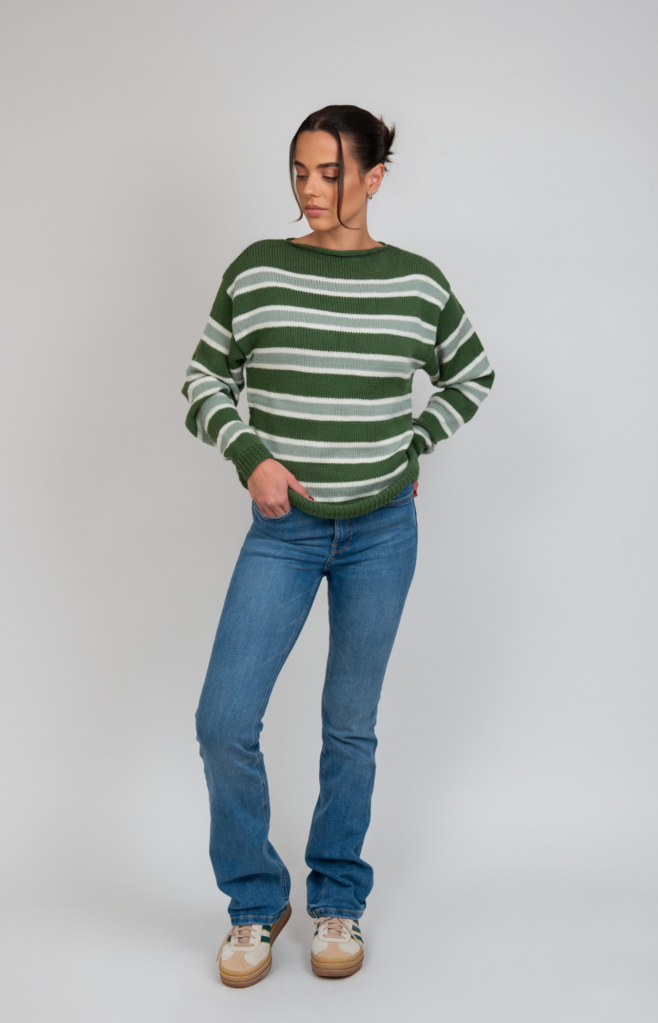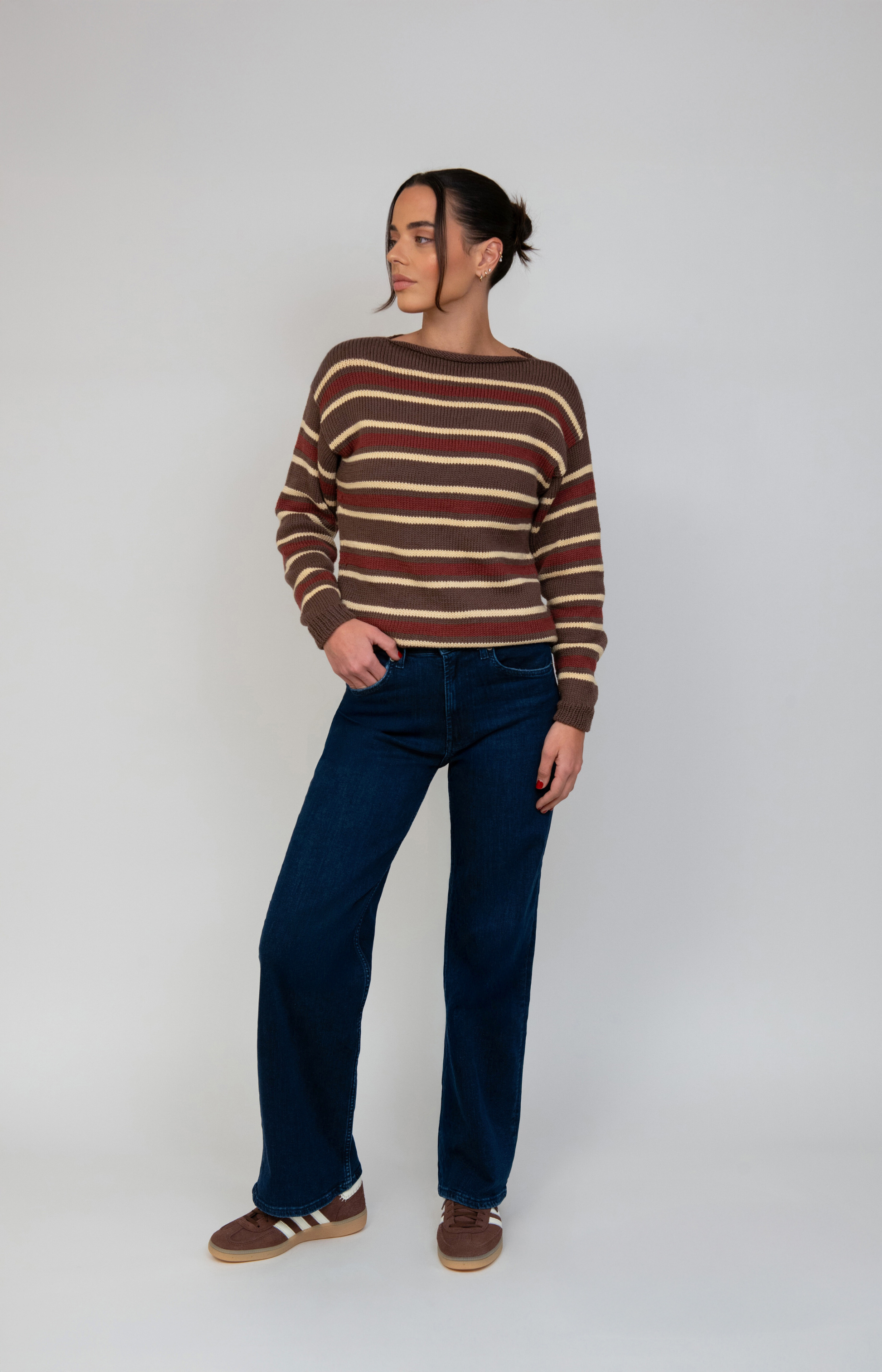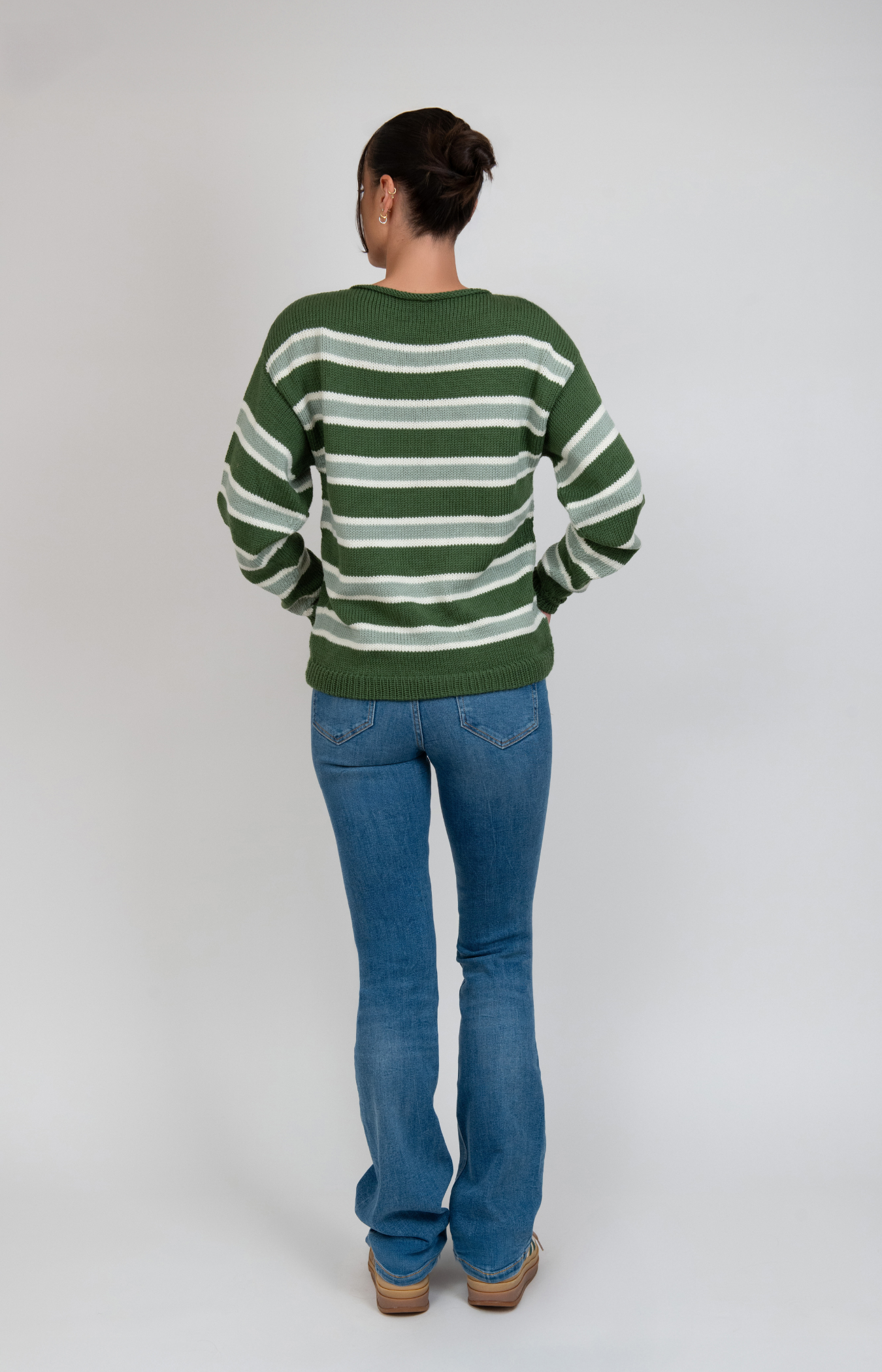 Hand-knit for everyday comfort, this striped pullover is soft, timeless, and cozy. Made from 100% premium merino wool, it provides natural warmth and breathable comfort through every season.
