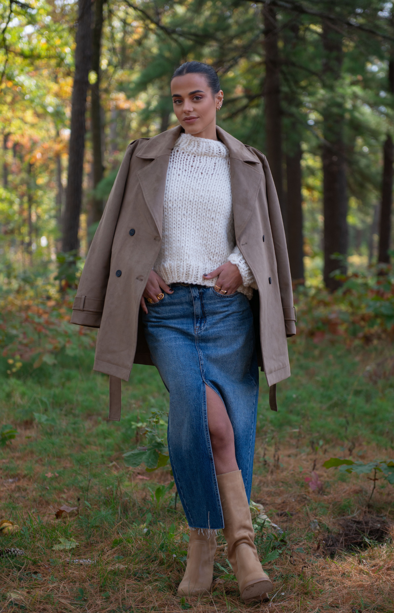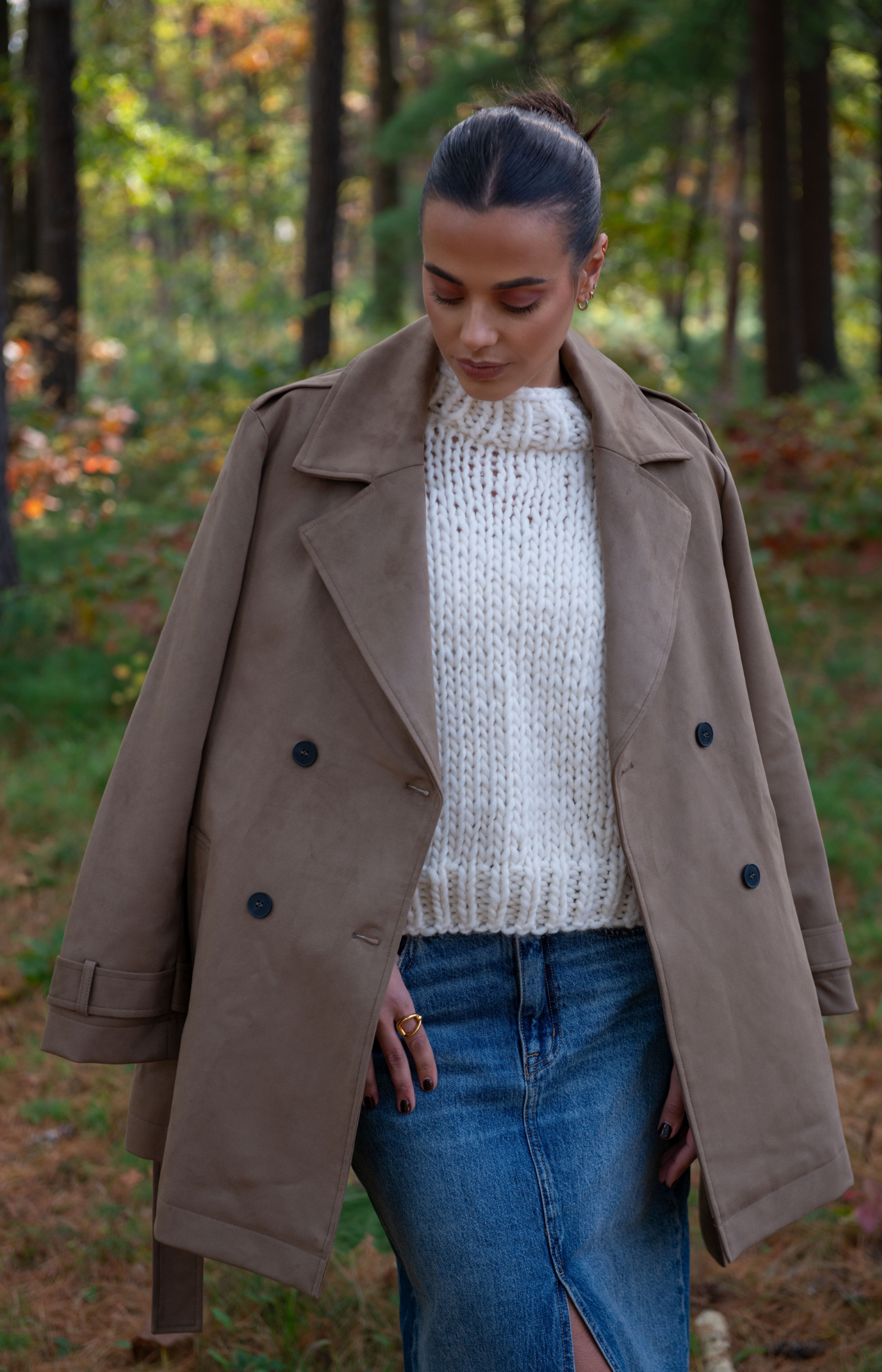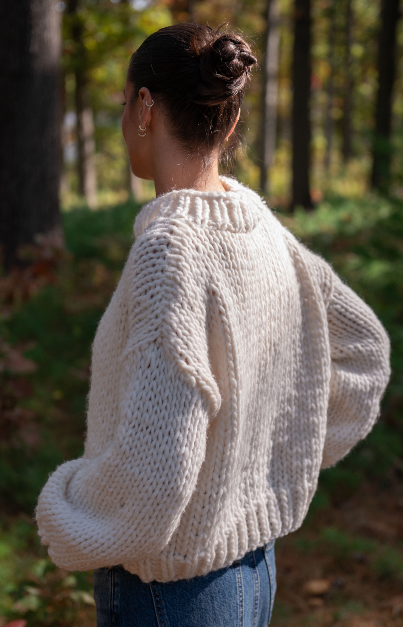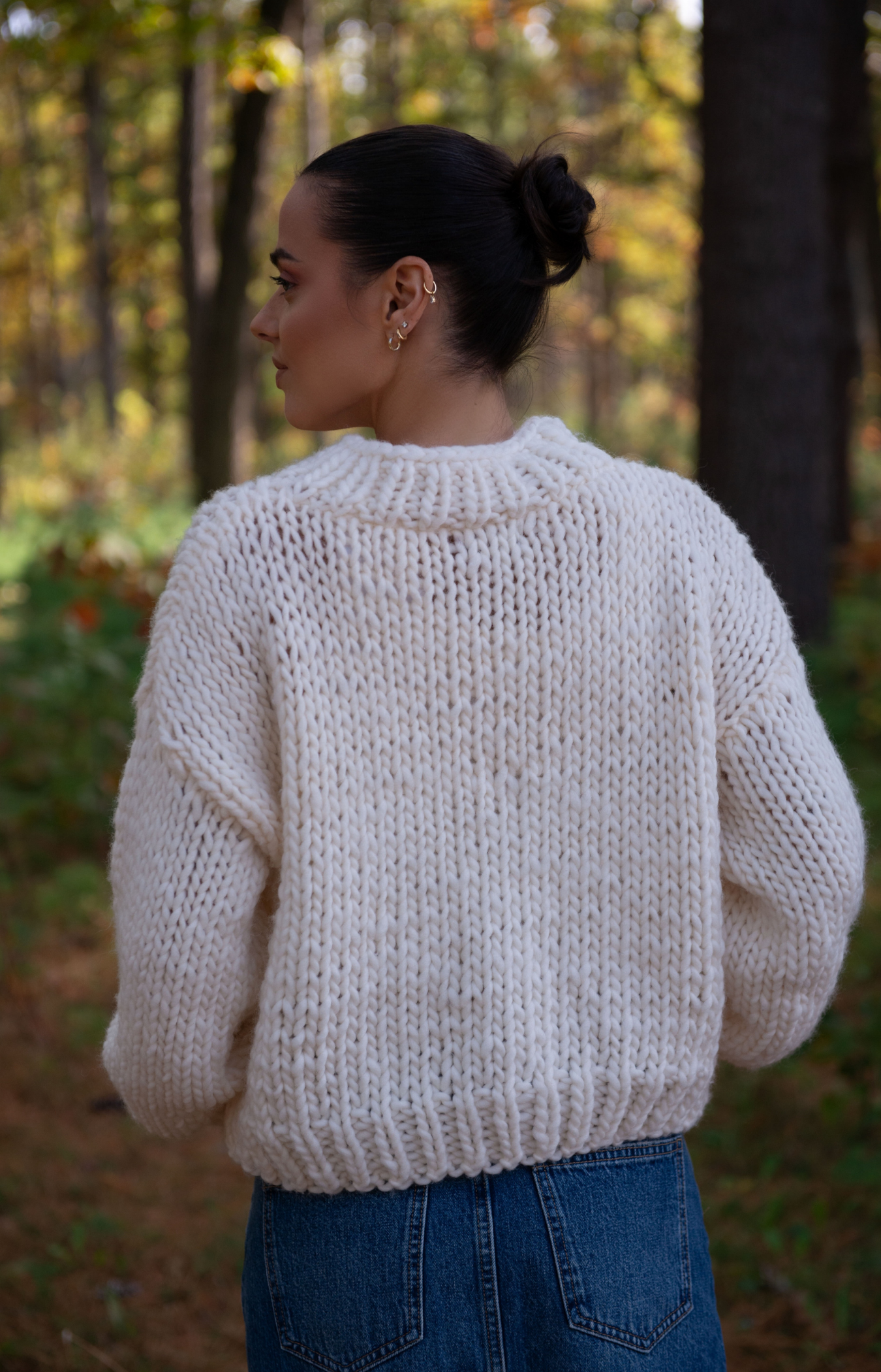 Your favorite chunky knit, designed to keep you cozy and warm all season long. Featuring the perfect neckline for effortless layering, this 100% wool sweater is hand-knitted with care for timeless comfort and style.